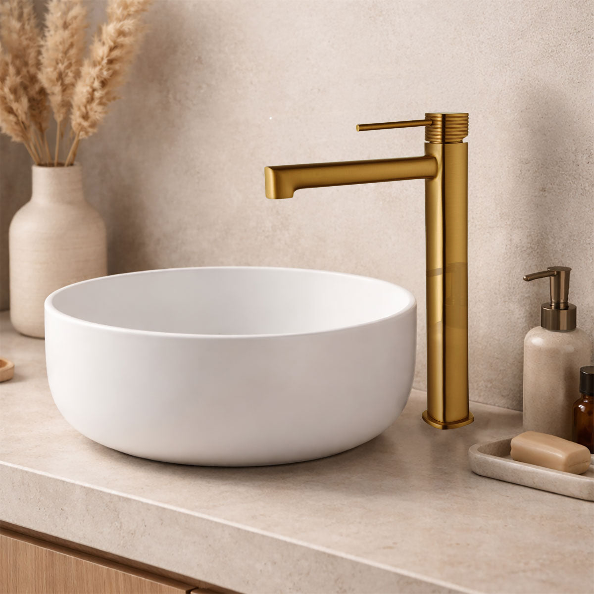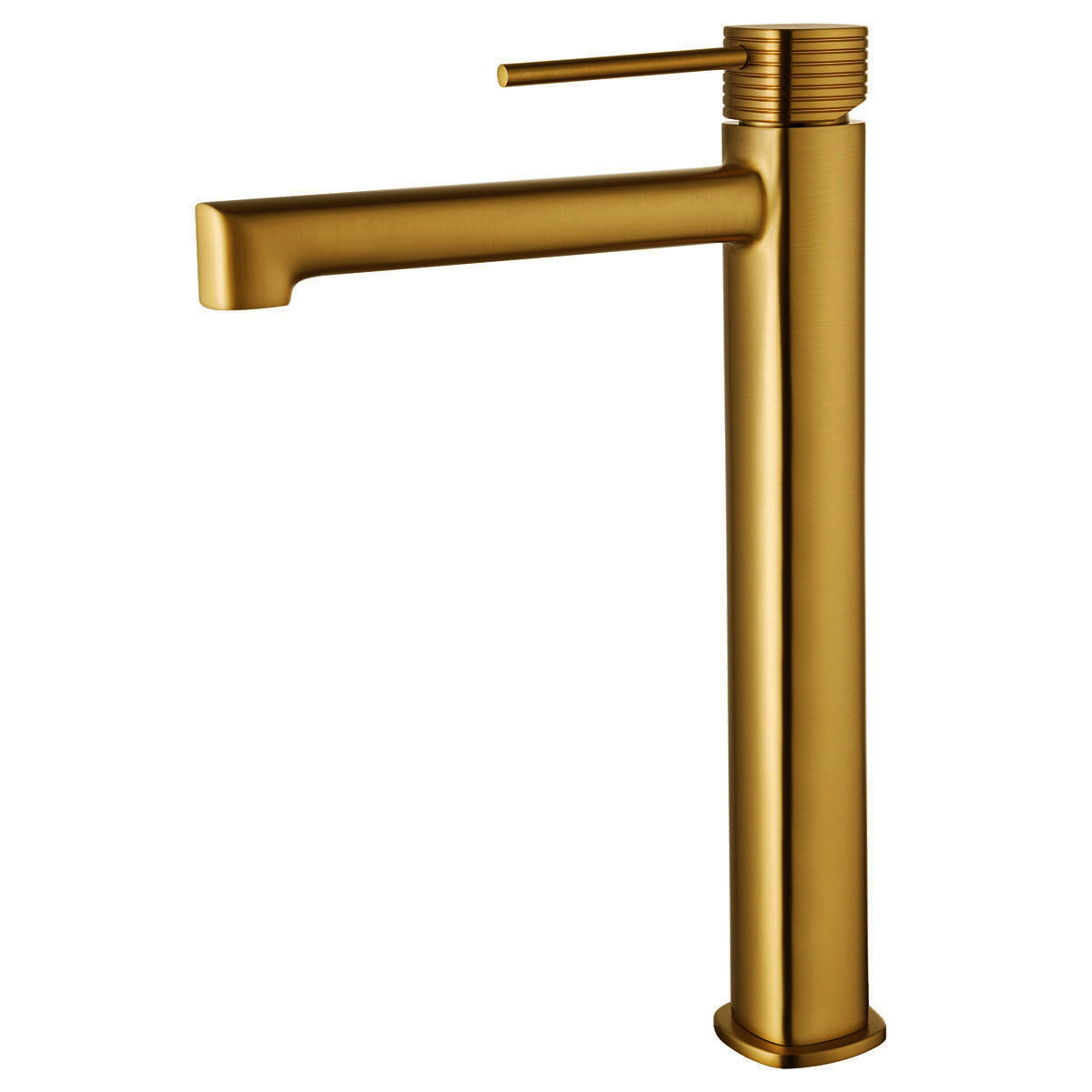 Tvättställsblandare Firenze Hög Borstat Guld – exklusiv höjd med karaktäristisk randdekor