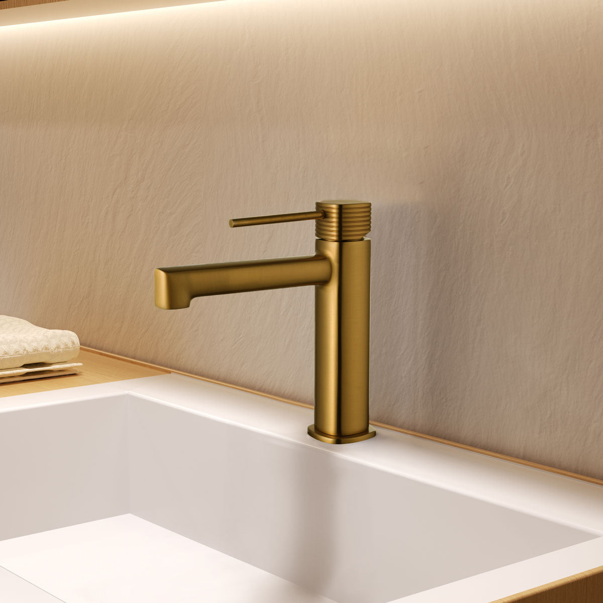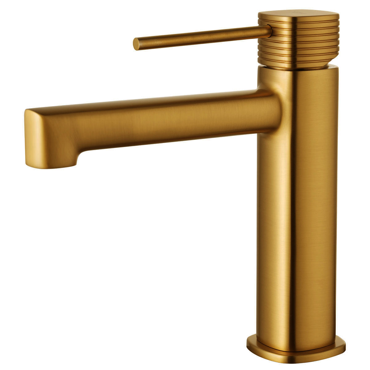 Tvättställsblandare Firenze Låg Borstat Guld – exklusiv värme med karaktäristisk randdekor