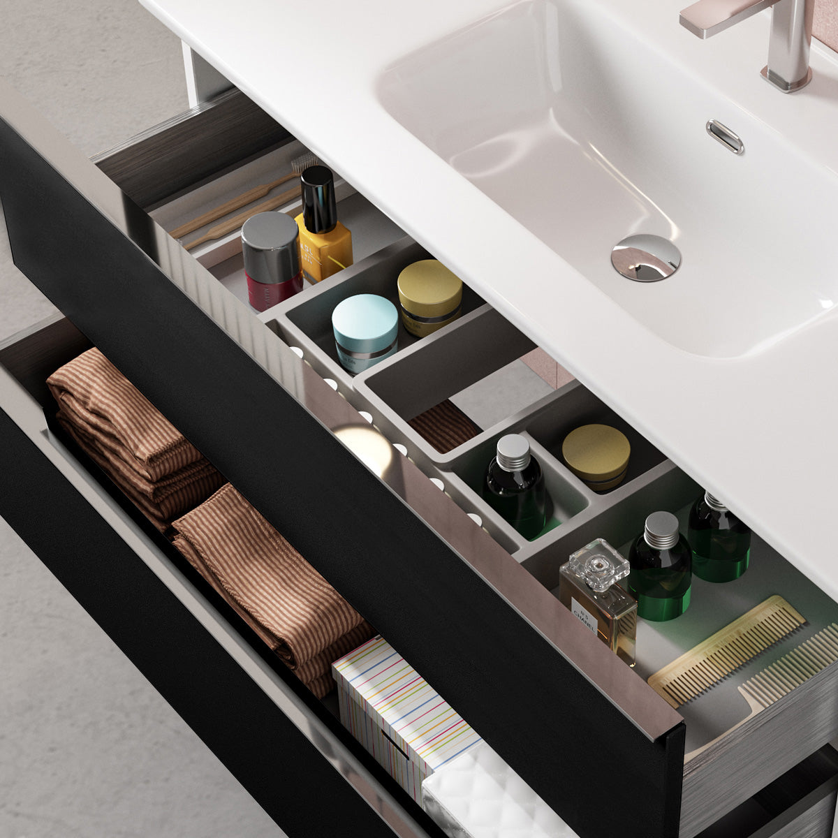 • 120 cm bred – En rymlig lösning med två breda lådor, perfekt för större badrum och familjer.